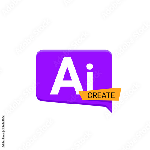 Purple speech bubble with the 'AI' text, symbolizing innovative technology in the field of graphic design. Vector illustration.