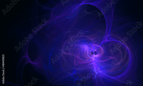 Purple violet blue 3d electricity charges in deep dark space. Chaotic blazing discharges and lightnings glowing in galactic dimension. Fictional scientific concept. Great as cover print, art.
