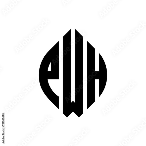 PWH circle letter logo design with circle and ellipse shape. PWH ellipse letters with typographic style. The three initials form a circle logo. PWH circle emblem abstract monogram letter mark vector.