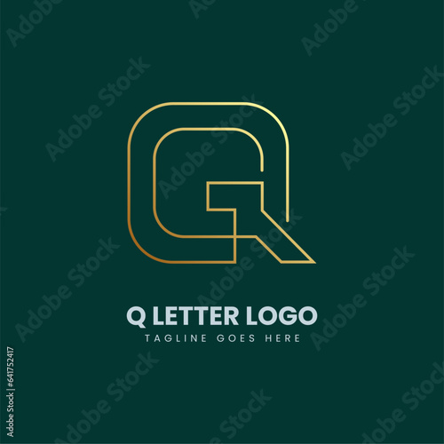 Q alphabet letter logo icon in gold and dark green color. Simple and creative golden design for company and business