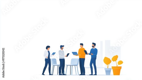 Quality assurance team discussing product standards, flat design illustration