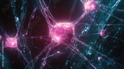 Quantum AI neural network represented as luminous energy webs floating against a dark, futuristic background