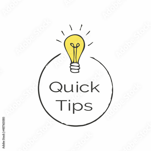 Quick tips information button. Textured message round icon with hand drawn lightbulb. Outline template isolated on white background. Vector illustration