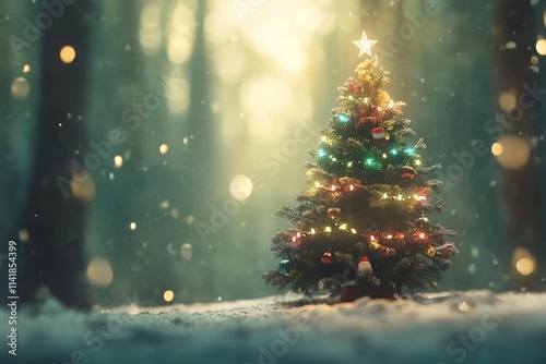 Quiet Forest Clearing with a Beautifully Decorated Christmas Tree