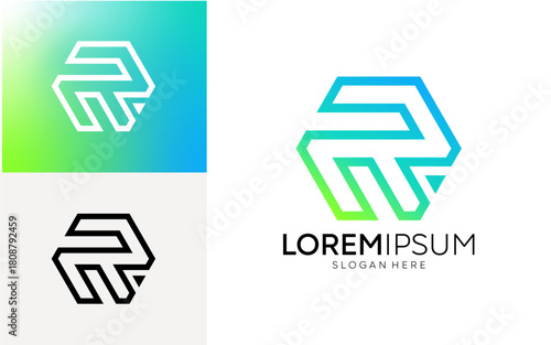 R initial logo design. Hexagon letter initial logo with gradient. Innovative high-tech logo template.