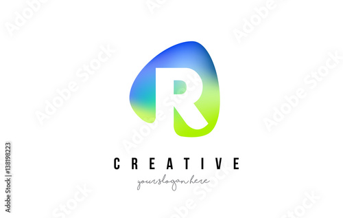 R Letter Logo Design with Oval Green Blue Shape.