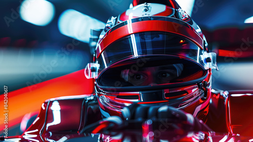 racing car driver before start of competition on track. Banner with copy space, digital ai art