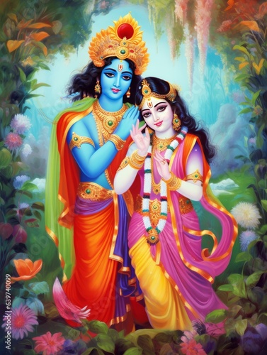 Radha Krishna, Lord Krishna, Radha Krishna Painting with colorful background, Radha Krishna Indian god Krishna Love symbol, Radha Krishna Holi, Radha, Krishana, Generative AI