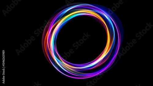Radiant Neon Rings - Abstract Circular Pattern, Dark Background
