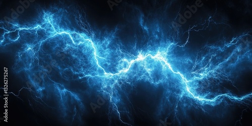 Radiant Thunderbolt Waves in Deep Darkness: A Shiny Blue Lightening Aura