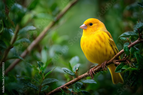 Radiant Yellow Canary Perched Amidst Verdant Foliage in a Serene Natural Setting