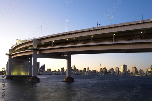 Rainbow Bridge from Odaiba, Tokyo, Japan