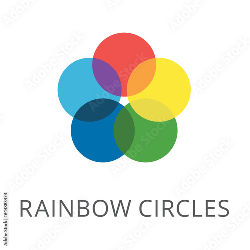 Rainbow circles in shape of flower flat vector icon. Cartoon drawing or illustration of balance or wellness symbol on white background. Wellness, decoration, spirituality, meditation concept