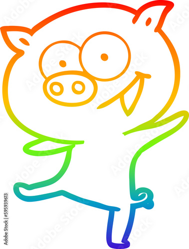 rainbow gradient line drawing of a cheerful dancing pig cartoon
