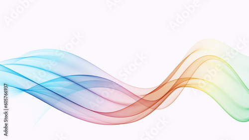 Rainbow horizontal transparent smoke wave on white background, design element
