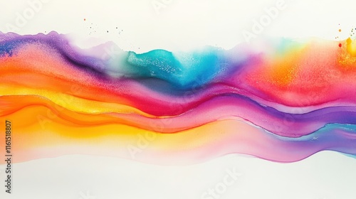 Rainbow watercolor banner background on white. Pure vibrant watercolor colors. Creative paint gradients, fluids, splashes, spray and stains. Abstract background.
