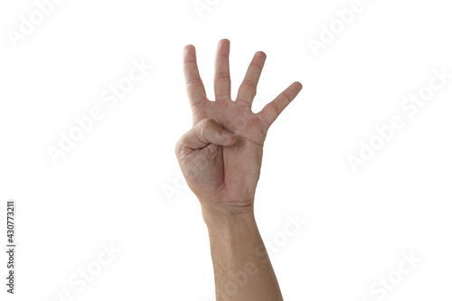 Raise your hand with four fingers isolated on white background