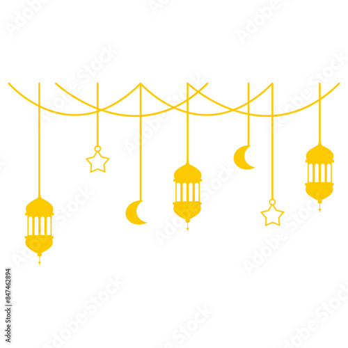 Ramadan Lantern Decoration. Gold Hanging Islamic Ornament. Vector Illustration.