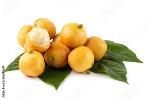 Rambeh tropical fruit with leaf isolated on white background