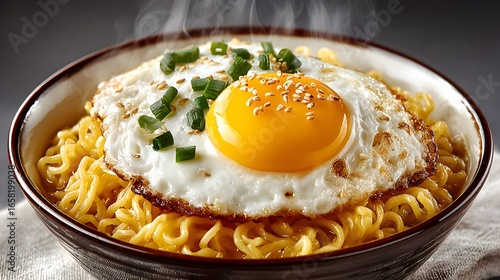 Ramen with Fried Egg, wide banner,background,wide food and restaurant photography fast food element