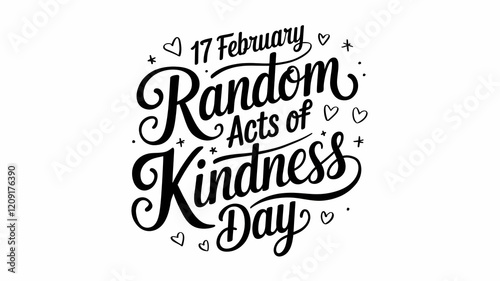 Random acts of kindness day hand-drawn calligraphy lettering. 17 February world altruistic holiday event greeting card decoration graphic element. Black words on white background