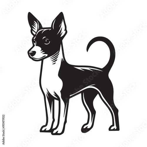 Rat Terrier Dog Standing silhouette - standing dog side view Vector illustration in black and white
