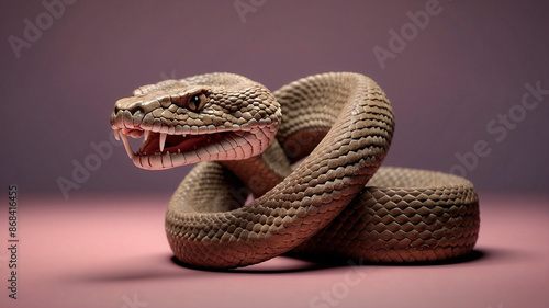 Rattlesnake on Solid Color Background. Minimal Abstract Digital Art