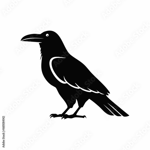 raven bird black silhouette vector, Simple silhouette Design vector icon with white background. Wild bird