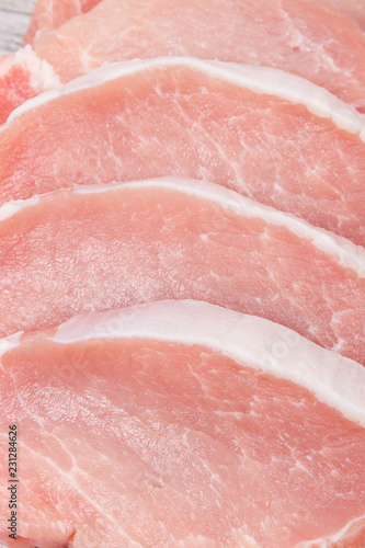 Raw meat pork steaks containing protein for lunch or dinner