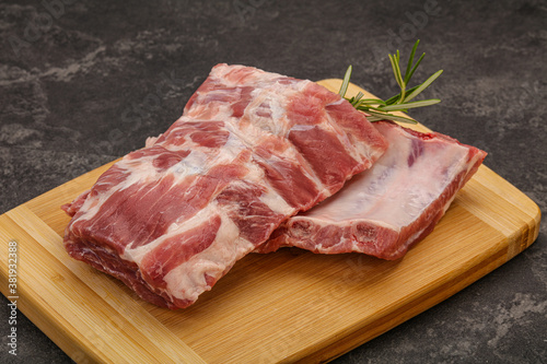 Raw pork ribs served rosemary