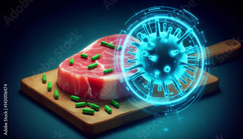 Raw pork steak with food safety contamination