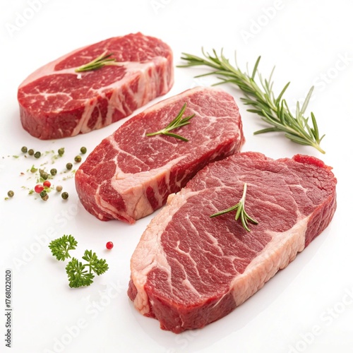 Raw Steaks Isolated ,Uncooked Steaks Ready for Cooking on White Background.
