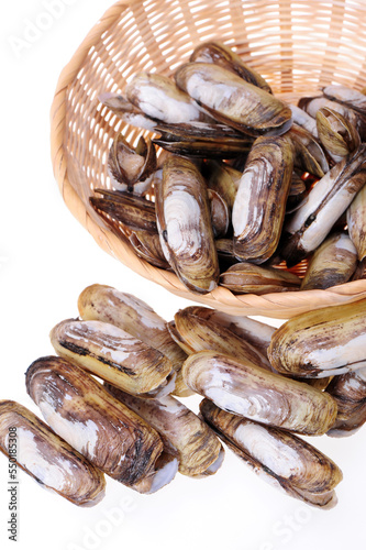Razor clams isolated on white background.