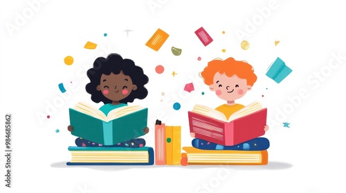 Reading for kids, highlighting children enjoying books with bright illustrations