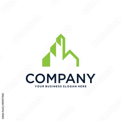 real estate logo design with building and house