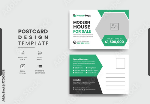 Real Estate Postcard Design Vector Template With Creative Modern Layout, Modern & Elegant Postcard Template Design Home For Sale.