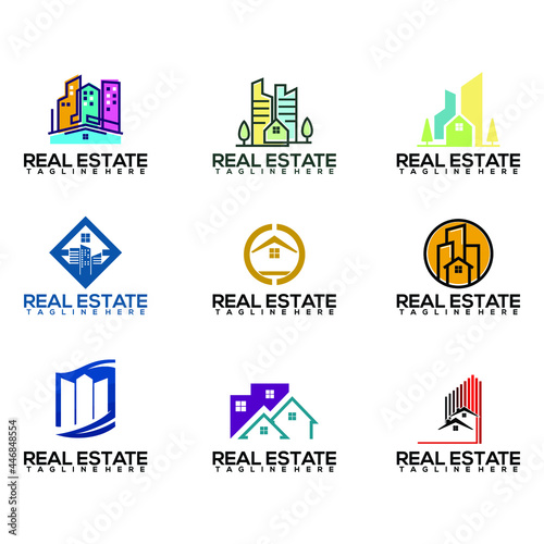 Real state modern, minimalist logo design set.