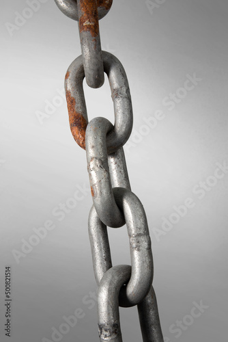 Real steel rusty iron chain isolated on white background.