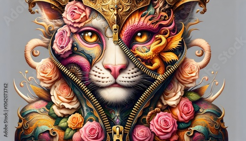 "Realeza Metamórfica: La Esencia del León y el Dragón"