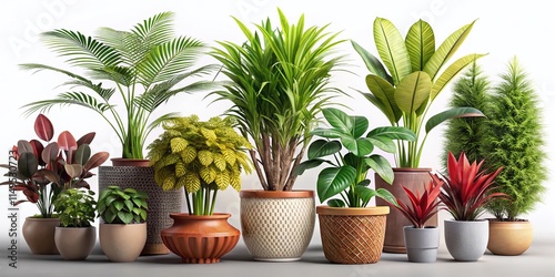 Realistic 3D Rendered Home Decorative Potted Plants, Isolated Interior Plants, Houseplants in Pots, Indoor Greenery, Botanical Decor