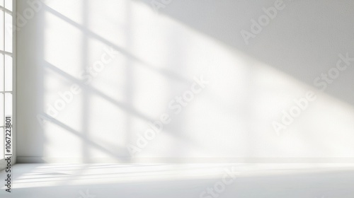 realistic and minimalist blurred natural light windows shadow overlay on wall paper texture abstract background minimal abstract light white background for product presentation