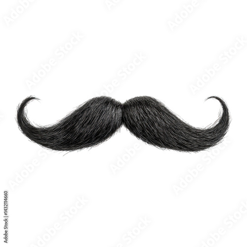 realistic black mustache with classic curled design, isolated on transparency background, perfect for use in playful or vintage themed projects