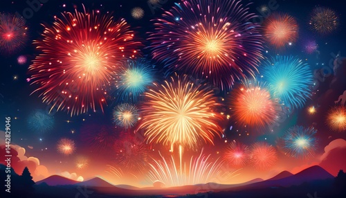 realistic fireworks exploding in the night sky