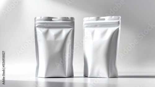 Realistic flow pack mockup. Vector illustration isolated on grey background. Easy to use for presentation your product, idea, design