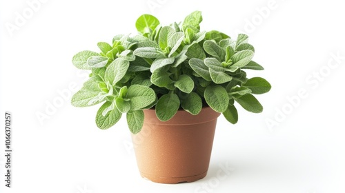 Realistic front view of a Salvia plant in a pot against a white background
