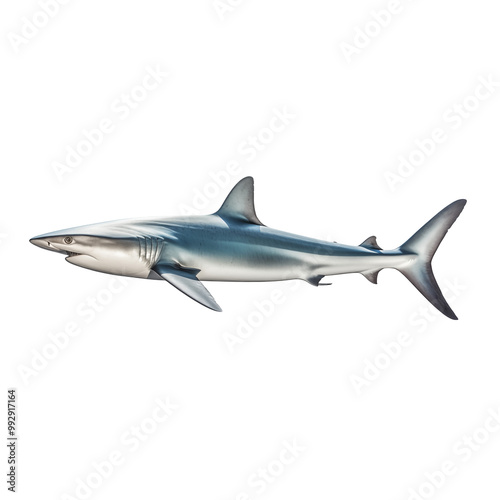 Realistic Gray Shark In Side Profile With Sharp Fins And Tail On White Background
