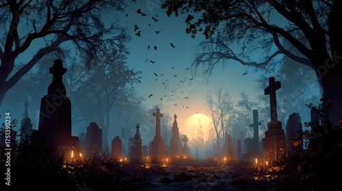 realistic halloween cemetery background vector, high quality