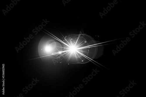 Realistic lens flare lights effect on black background