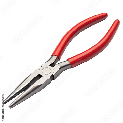 Realistic needle nose pliers with plastic or rubber handles isolated on a transparent background