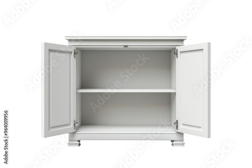 Realistic open white cabinet isolated on transparent background, for put things in cupboard.